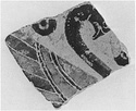 Description:   From a large closed pot or bowl. Swan, right. Inner wing band and alternating feathers of outer wing, purple red; middle wing band cherry red. Spirals in field.