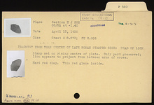 | Description: | Late Roman C fragment from near center of plate. Only part preserved; lion appears to project from between arms of cross. Hard red clay. Thin red glaz e inside. | |
