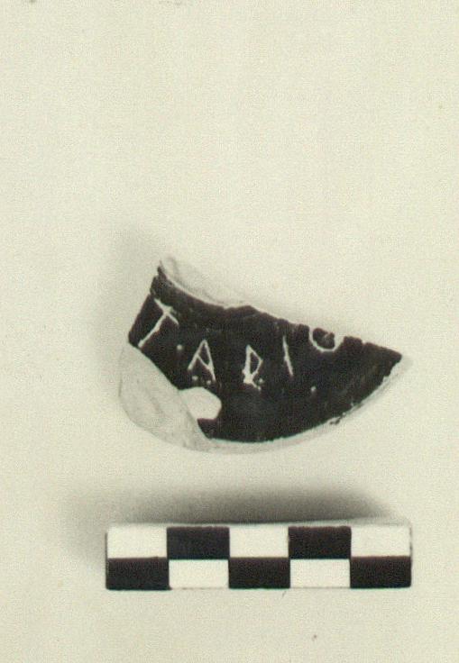 | Description: | From the base of a cup. Incised on the upper face. <graphic> Cf. P 3558 and P 15 835. | |
