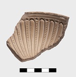 | Description: | Part of the original top of mold is preserved; broken elsewhere. The outside has two incised lines below the rim. Long petals separated by jewelled lines terminating in tiny fronds. For a bowl such as P 596. | |