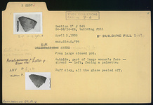 | Description: | From a large closed pot. Outside, part of large woman's face (siren?), left, facing a palmette. Buff clay, all the glaze peeled off. | |