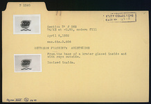 | Description: | Krater base fragment, glazed inside and with rays outside. Incised inside: <graphic> | |