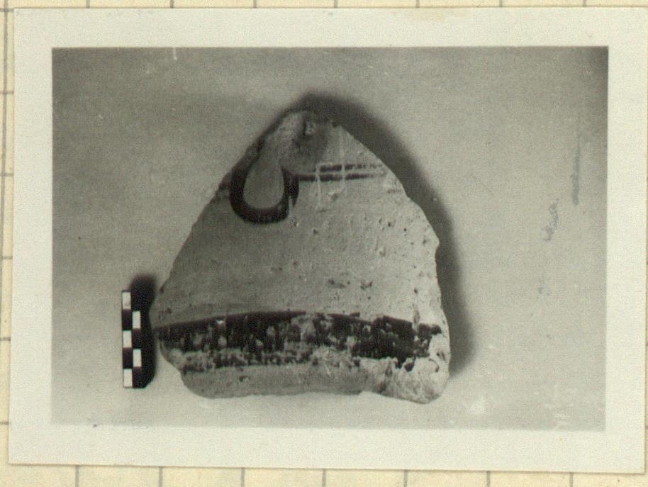 Description:   Flat bottom, wall sloping outward, pierced ca. 0.045 m. above the bottom by a large hole, width preserved 0.045 m.