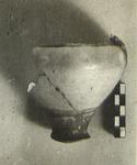 | Description: | Two contiguous fragments, preserving the small projecting vase and part of the body of a vase similar in shape to P 4646. Fine buff clay; creamy slip. Around the bottom and the base, a broad band of thin orange-red glaze. On the shoulder two bands, red to black, and slanting lines above them. | |