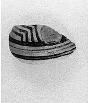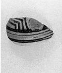 | Description: | Piece from shoulder of small pot similar in shape to P 4646; one handle attachment preserved. Creamy slip with decoration of black lines. Buff clay. | |