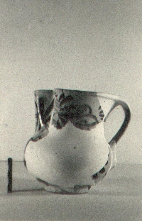 | Description: | Much missing from walls and rim. Restored in plaster. A wide-mouthed pitcher with squat round body. Blue and yellow painted decoration. Below the handle a Turkish(?) inscription painted in black. Soft yellow-buff clay; thick gray glaze. | |
