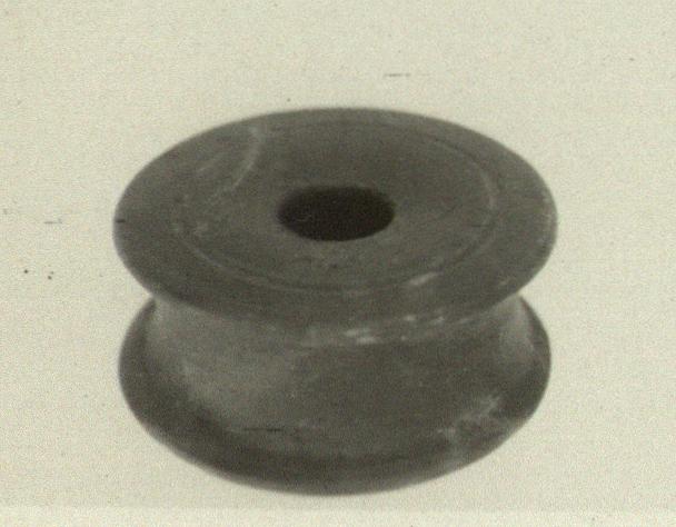 | Description: | Sides concave, top and bottom flat with small central opening in top; inkwell? Inside a small shallow groove, 0.009m. from the outer edge of the top; the surface slopes downward very slightly toward the opening. Attic clay; poor cloudy black glaze over all, inside and out. | |
