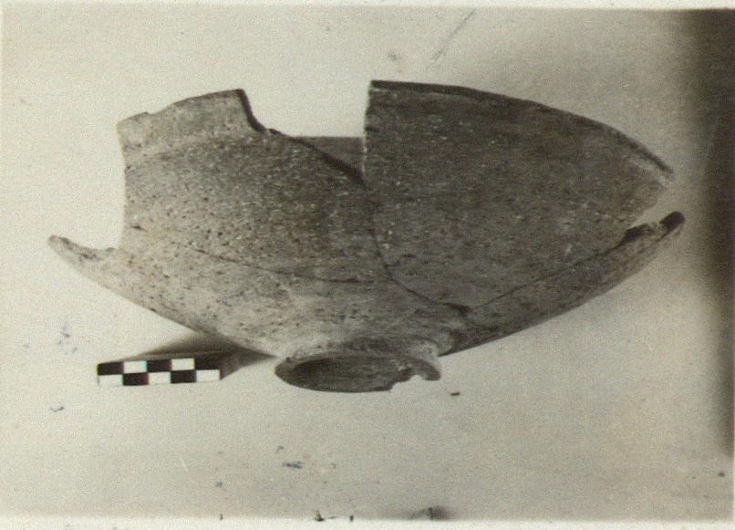 | Description: | Shallow plate with small ring foot; plain rim. Coarse clay with grits, fired partly red, partly gray, unglazed. | |