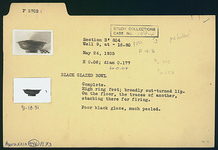 Description:   Complete. High ring foot; broadly out-turned lip. On floor, the traces of another bowl, stacked for firing.