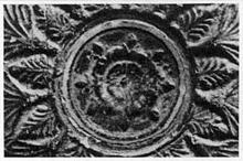 Description:   A few fragments missing from rim and walls. At bottom, rosette surrounded by incised ring; leaves around bottom. On body, goats rampant in pairs, facing each other over urns. Also erotes decorating altars. Egg and dart and guilloche below rim. Scraped groove beneath edge of rim.