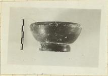 | Description: | High ring foot; rim turned slightly inwards. Pinkish buff clay; black glaze. | |