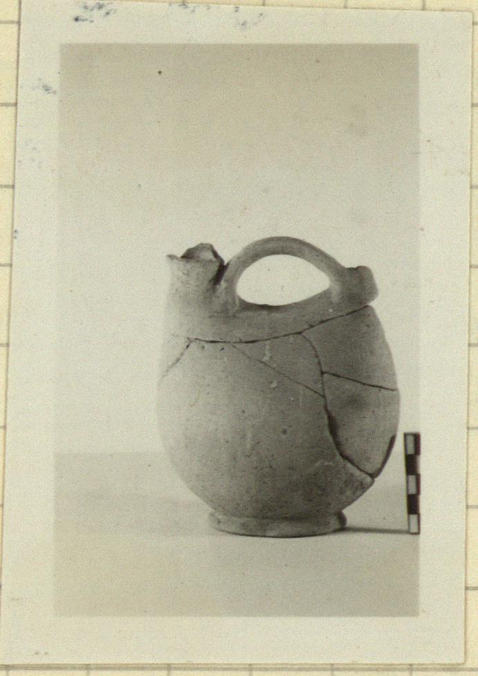 | Description: | Plain duck askos. Part of one side and rim of the spout missing. Gritty pink clay, slipped. | |