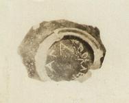 | Description: | Fragment from bottom; mended from two pieces; a small part of the foot preserved. Ring foot. Letters scratched in the dry clay within ring foot: <graphic> Attic clay, fair. Rather cloudy black glaze inside and out. Scraped colored groove on the underside of the foot. | |
