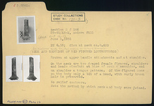 | Description: | Broken at upper handle attachments and at shoulder. On the neck are two draped female figures, shoulders and heads missing; at base of neck a maeander, and on shoulder a tongue pattern. Of the figured zone on the body only a bit of a head, with curly brown hair is preserved. No relief contours. Note the method by which neck and body were joined. | |