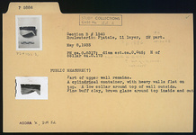 | Description: | Part of upper wall remains. A cylindrical container with heavy walls, flat on top. A low collar around top of wall outside. Fine buff clay, brown glaze around top inside and out. | |