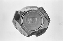 On floor, inside two concentric grooved rings, the stamp: <graphic>