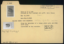 | Description: | From the shoulder of a large plain pot. Inscribed on the outside: <graphic> Pinkish-buff clay. | |