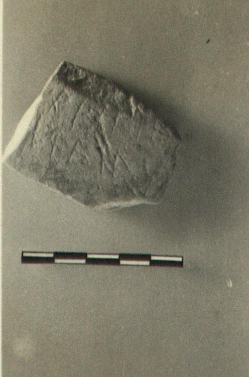 | Description: | From the shoulder of a large plain pot. Inscribed on the outside: <graphic> Pinkish-buff clay. | |