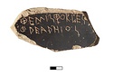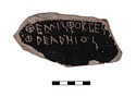 | Description: | From a large open bowl (possibly a semi-glazed krater?). Black glaze inside; none, except a band around the foot, outside. Incised inside: Θεμισθοκλες Φρεαρhιος | |