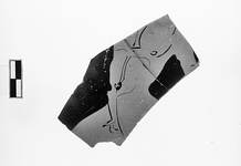 Description:   Torso of nude male figure with part of the left arm and right leg. Relief lines sketchy. The figure appears to be advancing rapidly to the left.