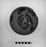 Description:   Similar to P 6006 (Γ 1607) but smaller. Restored in plaster. Inside ring foot, double cross of white and thinned clay paint; above foot, row of white dots between incised lines; on body, ivy pattern, stems and tendrils incised, leaves in thinned clay paint; berries and main stem in white; below rim between incised lines filled with red, thinned clay paint dots alternating with white double strokes.