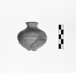 | Description: | Squat round-bodied pot on small, high and solid base, left rough beneath. None of the neck or lip preserved; no trace of handles. Slipped; glaze band around point of greatest circumference and base of neck. | |