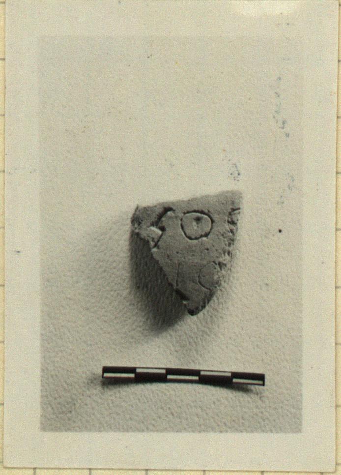 | Description: | From a coarse pot, unglazed both inside and outside. Incised outside: <graphic> | |