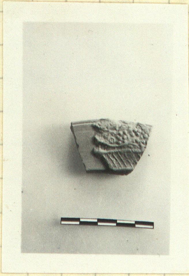 | Description: | Rim fragment of a Late Roman A plate with a basket of fruit in relief. | |