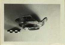 | Description: | Restored in plaster. Similar to P 6255 ff., but shallower. Four tiny blobbish palmettes surrounded by rouletting; traces of stacking. Black to reddish glaze fired a brilliant sealing wax red inside foot and stacking ring. | |