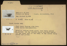 Metallic reddish black glaze, very badly peeled and pitted. On the outside nearly entirely peeled off the upper part of the body; on the inside badly peeled and pitted.
