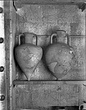 Pinkish buff clay with heavy creamy slip; added in red on each side of the neck: <graphic>
