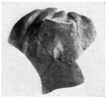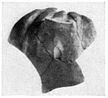 | Description: | From a closed pot with vertical strap handle. Coarse wide vertical grooves and dents. Handmade. Orange pink clay with gray inner and outer crust; orange pink surface over gray outside. Cf. P 4119. | |