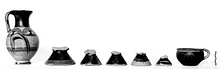 | Description: | Conical base similar to P 6688 (ΠΘ 270) but smaller. No reserved bands. Dot at center of floor. Metallic glaze, much peeled. | |