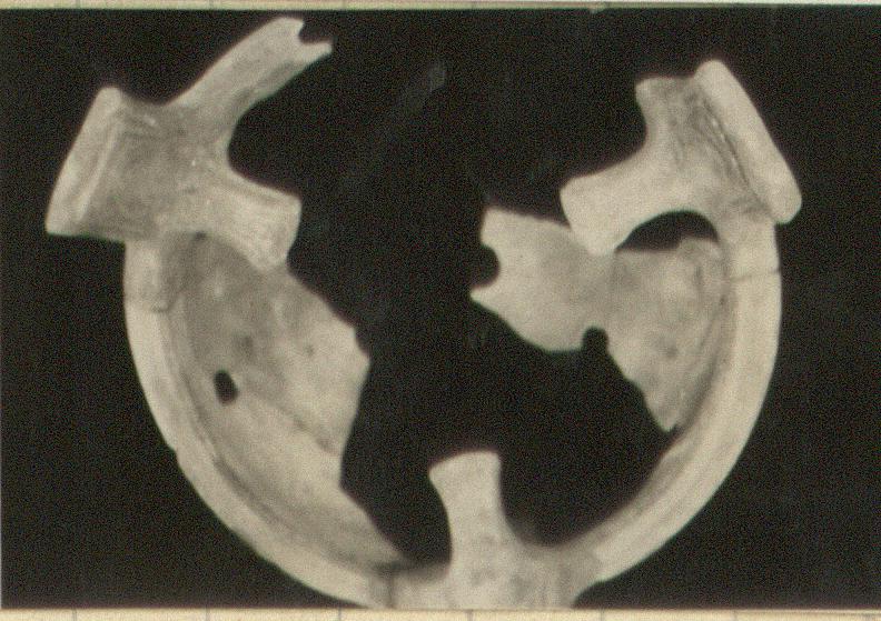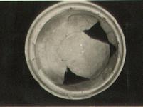 | Description: | a) Stand, mended from many fragments; complete height appears to be preserved in one place. Bottom concave, bordered by projecting ring from within which spring tapering sides pierced by a door, 0.086m. wide at bottom; stamped on undersurface: <graphic> b) Basin, also mended from many fragments; the three Satyr-head handles, with beards projecting inwards, preserved. More than half the body of the basin and one-quarter of the rim, missing. Restored in plaster. Part of a central hole preserved, and two of a row of smaller holes surrounding it. Rim heavy, projecting. Coarse red clay. Cf. Agora V, under G 123. | |
