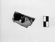 Description:   From a large closed pot (column krater), unglazed inside. Above, traces of border: tongue pattern? At right, youth's head, left, wearing purplish ivy wreath and a long lock before his ear. In front of him, a bit of some object, perhaps a cup or drinking horn. Cf. P 4674. Relief contours; hair outline reserved. There seems to be a pink wash over the flesh.