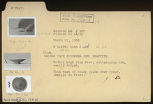 | Description: | Rather high ring foot; out-sloping rim, neatly ridged. Incised on the floor: <graphic> Thin wash of black glaze over floor. | |