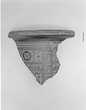 Description:   About two-thirds of the rim preserved, in two non-joining fragments.