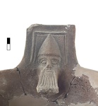 Description:   Fragmentary brazier on stand with bearded heads as pot supports. Mended from many fragments; most of the rim and walls of the bowl missing; a second bearded head belongs but does not join. The brazier is a small one, the stand low. The bearded heads wear pointed caps.