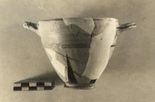 | Description: | Restored in plaster. Body fragments missing. Similar to P 7153 in shape; also in decoration except that there are large rays on the lower body above narrow bands. Glaze black to brownish. ADDENDA P 7153: Similar to P 7151 in shape and decoration; low base not ring foot; two reserved bands on lower body. | |