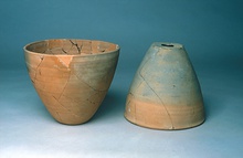 | Description: | Mended from many pieces; a few fragments missing from rim and walls, restored in plaster. Pinkish-buff clay. | |