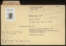 Description:   Mended from many pieces; a few fragments missing from rim and walls, restored in plaster.
