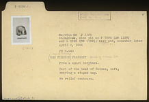 | Description: | From a squat lekythos. Part of the head of Hermes, left, wearing a winged cap. No relief contours. | |