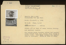 | References: | Publication: Hesperia Suppl. 2 (1939) Publication Page: Agora 8, s. 131, p. 117 Image: 2012.50.0532 (VI-31) Deposit: D 11:5 Card: P 7499 |