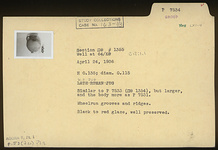 | Description: | Similar to P 7533 (ΠΘ 1354), but larger, and the body more as P 7531 (ΠΘ 1349). Wheel run grooves and ridges. Black to red glaze, well preserved. | |