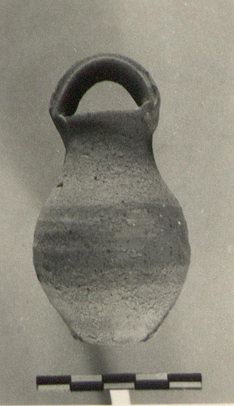 | Description: | Similar to P 7578 (ΠΘ 1373). Gritty brownish-buff clay, with much peeled greenish slip. ADDENDA P 7578: Flat bottom, narrow neck, grooved handle. | |
