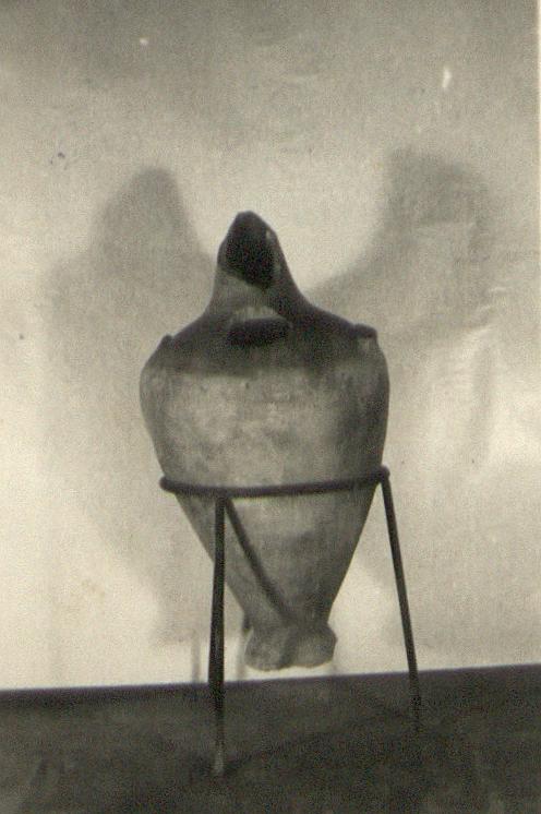 | Description: | Mouth and handles broken off and a hole in the shoulder. Flaring ring foot. Painted on the shoulder in black: <graphic> Red clay with grits, unglazed. Smeared inside with a black coating (resin?). | |