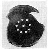 | Description: | Handle and much of wall missing. Deep bowl with incurved rim. In floor, ten large holes made by potter. Traces of vertical loop handle. Firm black glaze. Cf. P 2866. | |
