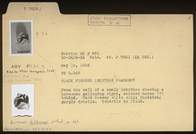 | Description: | From the wall of a small lekythos showing a horseman galloping right, another horse(?) behind. Tendrils in field. Hard creamy white slip; incision; purple details. | |