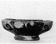 | Description: | Half of body missing and most of one handle. Black glaze inside and out with a wave pattern against a reserved band outside the rim. Rim flanged for a lid. | |