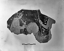 | Description: | From the shoulder of a large pelike (?). Unglazed inside, polished; surface much battered. At the left, a youth wearing an himation, moves right, playing flutes which are attached to a headband. In the center a small draped figure broken away, faces right; at right, a bearded figure, wearing an himation and holding a slender staff, faces left. At the extreme left of the fragment is a bit of a tray for offerings; held out by a fourth figure(?). AboIUU--*-----------------------+§ve, behind the flute-player's head, trace of some other object. Relief contour for profile and neck, and staff; spasmodically elsewhere. The glaze of hair and beard runs to brown. White (worn) for leaves on fillets and tray, and for a streamer depending from object at upper left. | |